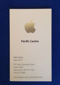 之前曾經在網路上看到有人貼出一張Apple Pacific Centre名片的照片,讓人覺得頗為KUSO的是名片所有人的名字「Sam Sung」洽巧與蘋果的死對頭「三星」的英文名字完全相同!