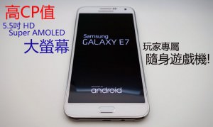 圖:GALAXY E7的5.5吋HD Super AMOLED螢幕夠大、夠清晰,色彩也相當明亮,足以呈現各類型遊戲的細膩畫質,對於喜愛玩遊戲的使用者來說,E7的確是個超適合拿來玩手遊的最佳手機,再加上大容量的電池讓續航力更有「凍桃」,讓你可以「E」直玩到天荒地老!