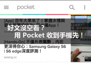 ![[App] 好文章沒空看?用「Pocket」先收藏到手機的「口袋」中吧! - 阿祥的網路筆記本 pocket001](https://axiang.cc/wp-content/uploads/2015-04-22-162503-90.jpg)