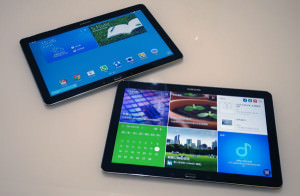 在去年初的CES 2014,三星正式發表了超大尺吋的「PRO超平板產品」Galaxy Tab Pro與Galaxy Note Pro,這兩款產品都是三星「破天荒」螢幕尺寸的新嚐試,採用12.2吋大小的螢幕,大小幾乎是直逼主流的13.3吋筆電,但重量更輕、厚度更薄,強調更好的攜帶性,但又同時具備筆電商務應用的辦公室文件處理能力,因此主打的是商務應用人士,像是業務人員,或是經常需要商務旅行的專業人員。