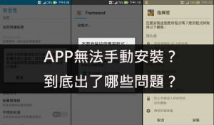 通常會出現這樣的狀況,多半是因為你選擇安裝的APK程式,裡頭包含了變更系統權限或是更動現有機制的功能,像是下圖範例的「Framaroot」,就是一個專門用來將手機「ROOT」取得最高權限的程式,因此在安裝時就會直接被阻擋並警告,這樣的狀況可以透過關閉Google設定中的安全性檢查來解決,但還是要提醒大家,一定要確認檔案來源的安全性,才確認進行程式的安裝與設定的改動!
