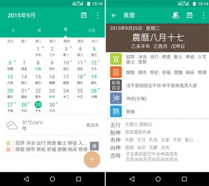 圖:InFocus M808內建的行事曆功能,除了能顯示農曆日期,更能進一步標示出每一日的宜、忌事項,而且資料十分詳細,我們不需要額外下載農民曆功能,就可以直接查看到最詳細的農民曆資訊。