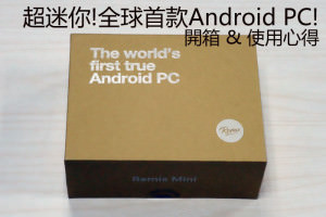 圖:「Remix Mini」包裝盒正面,英文字寫著「全球首款真正的Android PC」!