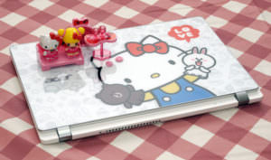 圖:純白基底,滿滿都是 HELLO KITTY 與 LINE FRIENDS 元素設計的筆電,超可愛的外觀設計,就連男生也會多看幾眼呢!