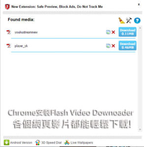 先前阿祥分享過許多針對Youtube、Facebook、Vimeo…等知名線上影音串流平台影片下載的線上服務或是軟體工具,不過其實大家常用的線上影音平台並不僅止於此,像是對岸的優酷、土豆…等,或是有些網站將影片放在自家伺服器…時,就沒辦法將影片下載下來了。不過還好在Chrome瀏覽器中可以下載這款「Flash Video Downloader」的擴充功能,讓我們可以輕鬆將網頁上的影片下載下來囉!