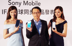 圖:台灣SONY Mobile總經理林志遠先生與Show Girl展示最新推出的Xperia XZ與Xperia X Compact。