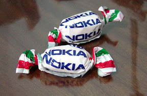 今天陪表弟去通訊行看手機,因為是過年期間,所以通常在櫃檯都會放糖果請客人吃,結果我竟然看到了…掛著NOKIA牌子的糖果…基於好奇心…我就拿了兩顆回家品嚐…結論是…NOKIA還是專心作手機比較好~~~這當然是玩笑話,不過真的覺得很有趣,這種NOKIA的糖果真的有經過NOKIA的官方授權嗎…?有時間再去查查看好了…