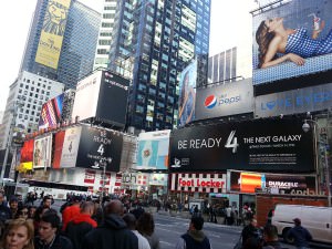 圖:除了大型的戶外平面廣告看板,時代廣場上吸睛度百分百的應該還是巨幅的LED電子螢幕廣告!
