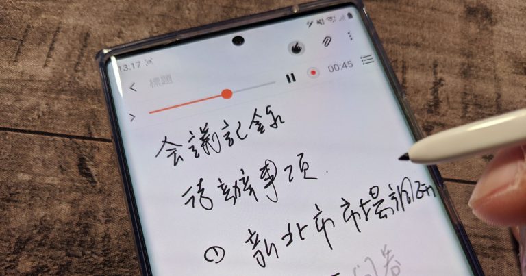 此外,Samsung Notes 新加入了語音同步筆記,也可以讓我們一邊筆記一邊錄音,同時在回放錄音時,畫面上的筆跡也會依時間序展示當下我們筆記撰寫的即時動態,以方便我們回議會議或課程當下的內容。