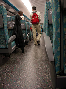 車廂內一景,走道蠻寬敞的,一般車廂的座位是一排五個,坐起來的感覺似乎也沒比台鐵自強號舒服到那裡去,不過也不難坐就是了…
