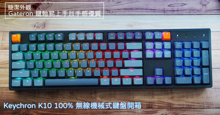 而今年春節前,阿祥也再次入手了 Keychron 新款的 K10 100% 無線藍牙機械式鍵盤,相較於 96% 版本,佈局為全尺寸設計,不會有鍵位過於緊湊、或缺乏特定按鍵的狀況,且相對鍵盤整體不會過大,完全滿足我的需求。