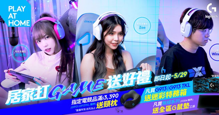 即日起至 5 月 29 日,購買 Logitech G 指定電競產品,消費滿 3,990 元即送 Logitech G 限量記憶棉頸枕,以人體工學設計,為頭頸提供保護;購買 G913 系列鍵盤,即送限量特務迷彩收藏箱,為精心設計的 G913 鍵盤送上最奢華的保護;購買指定無線電競產品,即送 Logitech G 全區鼠墊,數量有限,送完為止!此外,5 月 11 日當天,於 momo 購物網「Logitech 超級品牌日」購買指定 PRO X SUPERLIGHT 滑鼠,再加送 Logitech G 限量防滑潮型鼠貼,數量有限,送完為止。Logitech G 就是要給你最好的,陪你在家暢玩、爽度無限,感受遊戲世界之巔!