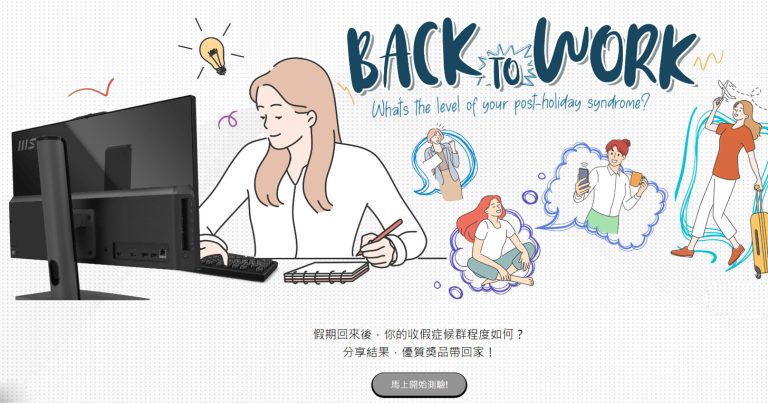 參加測驗「收假症候群測試」並贏取獎品:https://tw.msi.com/Promotion/Back-to-Work-2023