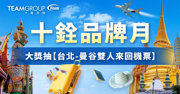 為了感謝消費者長期以來的支持,十銓「品牌月活動」於溫馨五月歡樂起跑 , 即日起至 6 月 30 日,凡在線上線下購買 TEAMGROUP, T-FORCE, T-CREATE 全品項產品,不限金額即可登錄發票參與抽獎,除有多項精美好禮,今年最大獎官方更提供台北至曼谷雙人來回機票,讓您逍遙享受泰國度假樂趣,留下美好旅遊回憶。