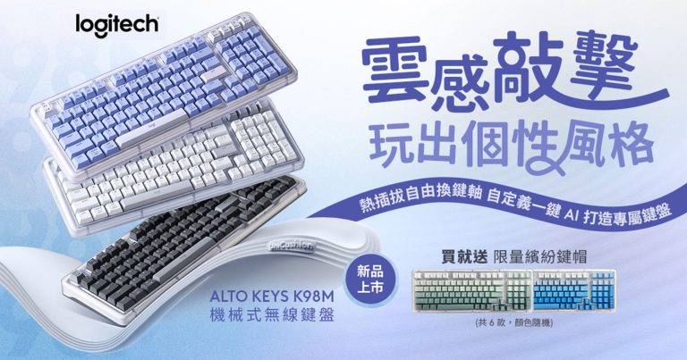 Logitech ALTO KEYS K98M 機械式無線鍵盤將於 9 月 9 日起於全台指定通路正式開賣,推出石墨灰、珍珠白與夢幻紫三款配色,建議售價 NT$2,690。上市期間加碼限時好禮,凡購買即隨機贈送限量繽紛鍵帽(共六款顏色,數量有限,送完為止)。消費者可於 全台 Logistore 羅技旗艦館、PChome、MOMO購物、蝦皮、燦坤、良興、三井、原價屋等線上線下通路發售,搶先體驗兼具舒適手感、AI 功能與設計美學的全新無線機械式鍵盤。